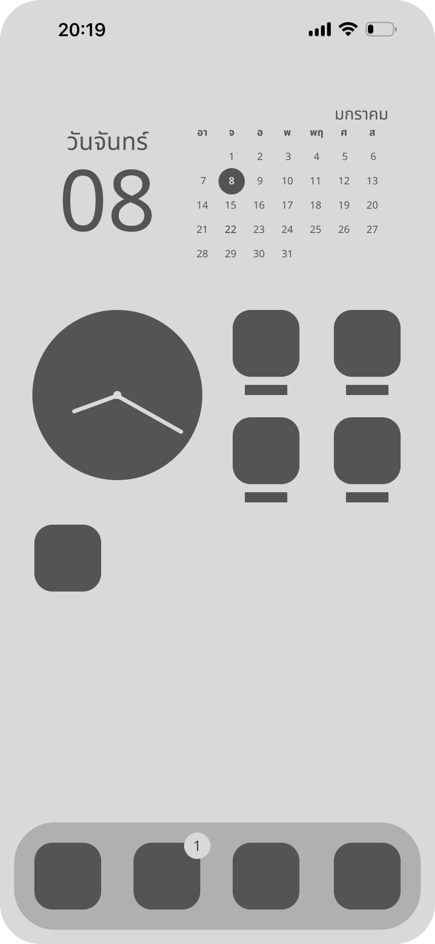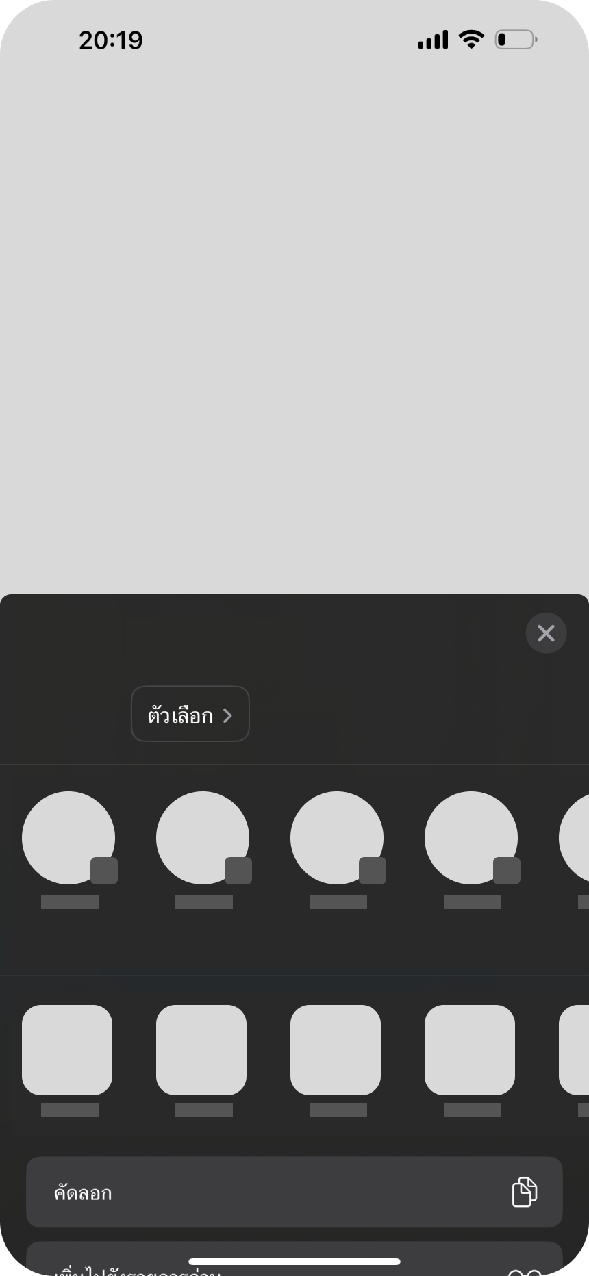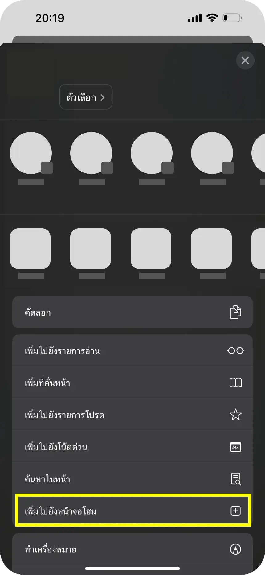 แล้วลากขึ้น เพื่อแสดงเมนูด้านล่าง